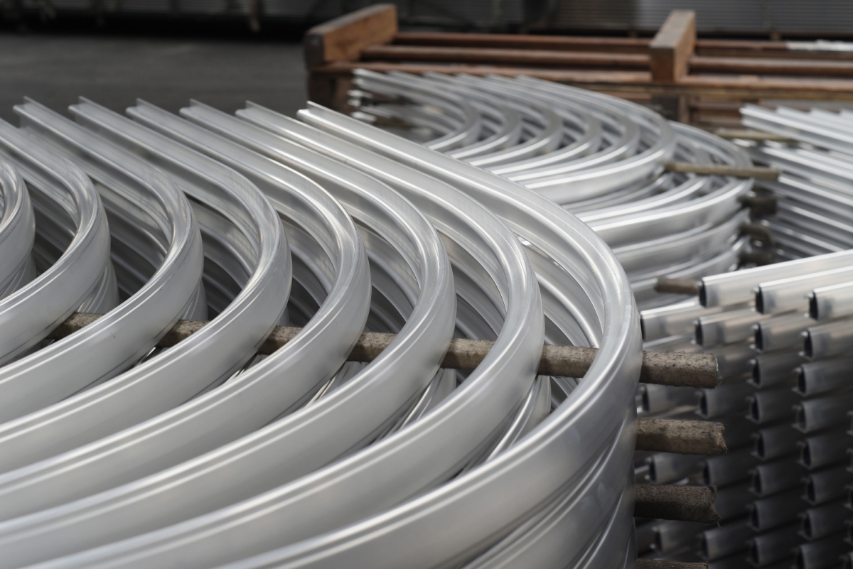 La maquinaria de curvado y moldeado suele centrarse en el mercado de las duchas, por lo que debe ser de la máxima calidad. Gracias a las piezas intercaladas que se emplean, no hay deformaciones, sea cual sea la curva que se requiera. Hasta ahora, esta era una de las operaciones más problemáticas en la fabricación de aluminio; nuestra experiencia es fundamental para producir constantemente grandes volúmenes de perfiles curvos de manera precisa y meticulosa.