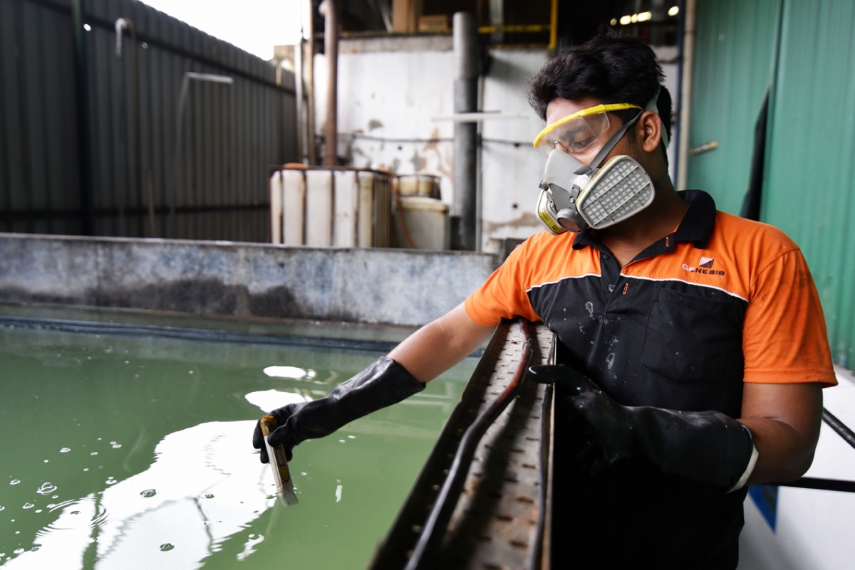 Desde el año 2009, Genesis ha realizado una gigantesca inversión en tratamiento y purificación de agua, de modo que cuando el agua sale de nuestra empresa, es al menos tan pura como cuando entró. Las sustancias químicas empleadas para el anodizado se miden y se supervisan constantemente, y las emisiones producidas por dichas sustancias también se tratan y se controlan para asegurarnos de no dañar el medio ambiente.